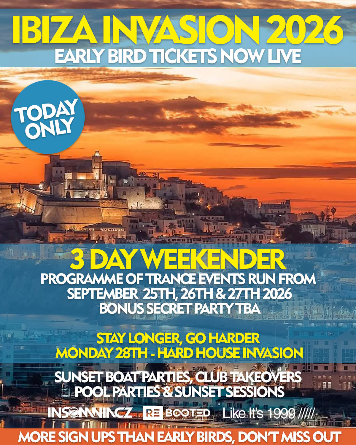 This year, weโre bringing Insomniacz Rebooted and Like Itโs 1999 straight to Ibiza for a full-throttle weekender featuring some of the worldโs biggest trance DJs and events. ๐